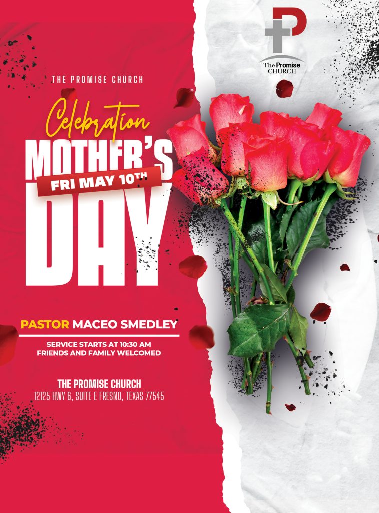 Celebrate Mother’s Day with us at Promise Church on Sunday, May 10, 2026, at 10:30 AM! Join Pastor Maceo Smedley and First Lady Shante Smedley for a heartfelt service honoring mothers and the powerful role they play in our families and community.